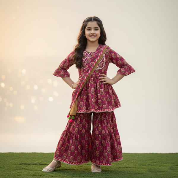 আপনার ছোট্ট সোনামনির আরাম আর স্টাইল—দুটোরই যত্নে তৈরি এই Premium Soft Linen Sharara Set 💛